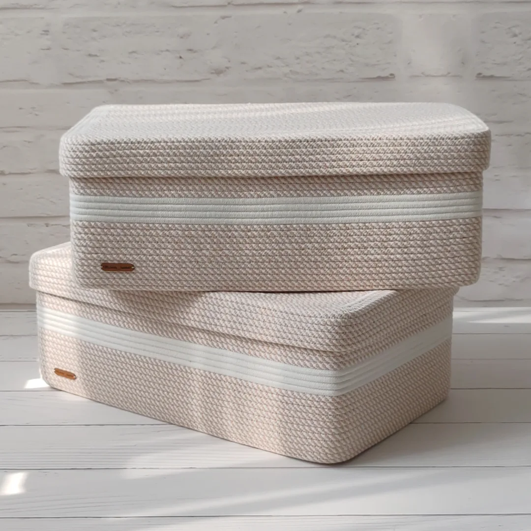باکس نظم دهنده مستطیلی دوخته شده با پارچه کتان نخ ترک سایز ۵۰×۳۲×۱۸