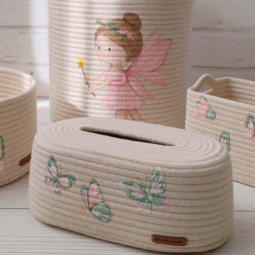 یه گوشهی کوچیک از اتاق بچهها، اما پر از خیال و آرامش… اینجا همهچی با عشق دوخته شده؛ از پروانههایی که روی طنابها نشستن، تا فرشتهی کوچولویی که با چوب جادویش لبخند میسازه هر سبد یه قصهست… قصهی نظم، لطافت و خیالپردازی کودکانه کاش میتونستی نرمیِ بافتش رو از نزدیک لمس کنی این سبکو کجا ازش استفاده میکنی تو دکور خونهت؟ (پایین برام بنویس، ایدههاتو عاشقانه میخونم ) ممنون از دوست و همکار خوبم بابت طرح های زیبای نقاشی خداقوت عزیزم @atanazrtpainting #قیطان_دوزی @lovely__basket @lovely__basket