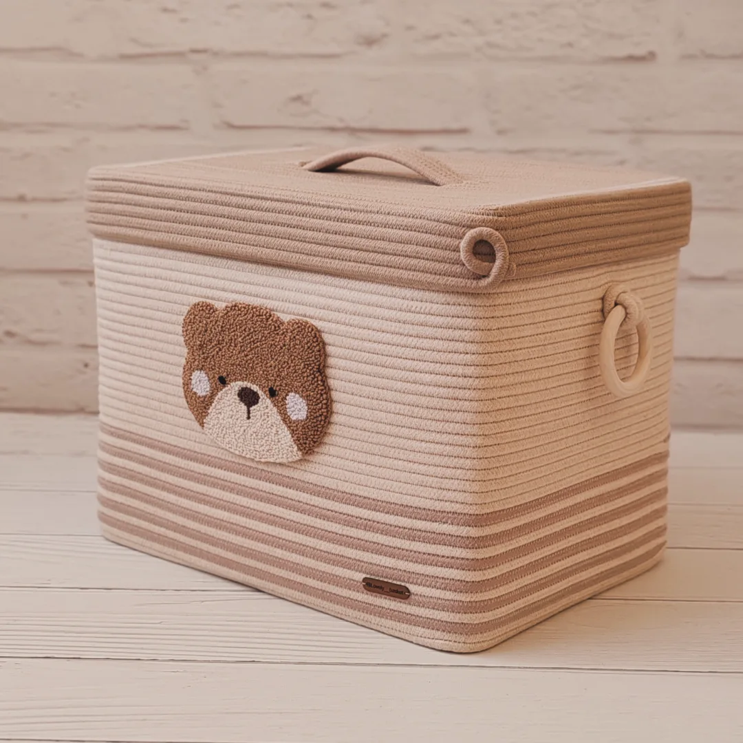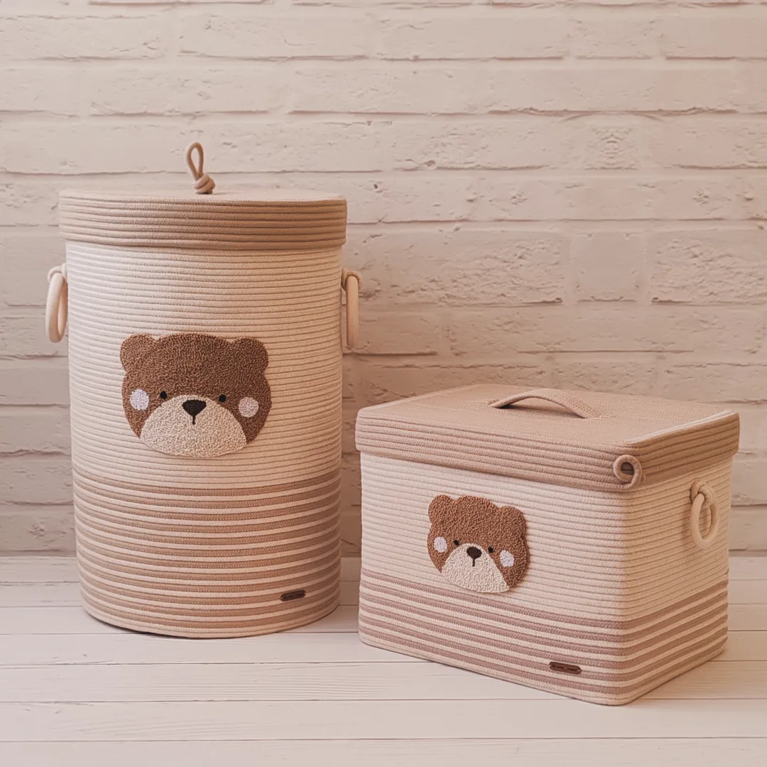 سبدهای نظمدهنده قیطانی با طرح تدی ، هم زیبایی رو به اتاق کودک شما میارن و هم کمک میکنن وسایل کوچولوها همیشه مرتب باشن! دوخته شده با قیطان نخ پنبه ، مقاوم و قابل شستشو، انتخابی ایدهآل برای سیسمونیهای خاص و کاربردی.
